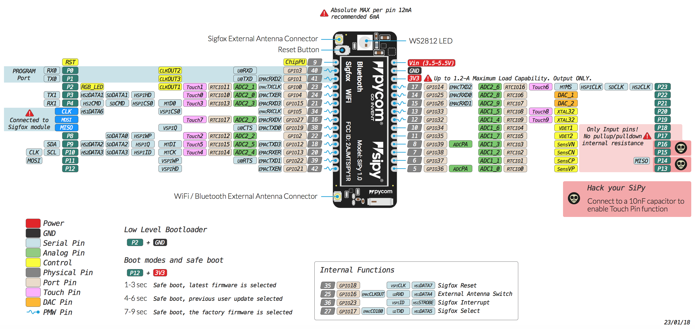 The pinout of the SiPy is available as a PDF File.