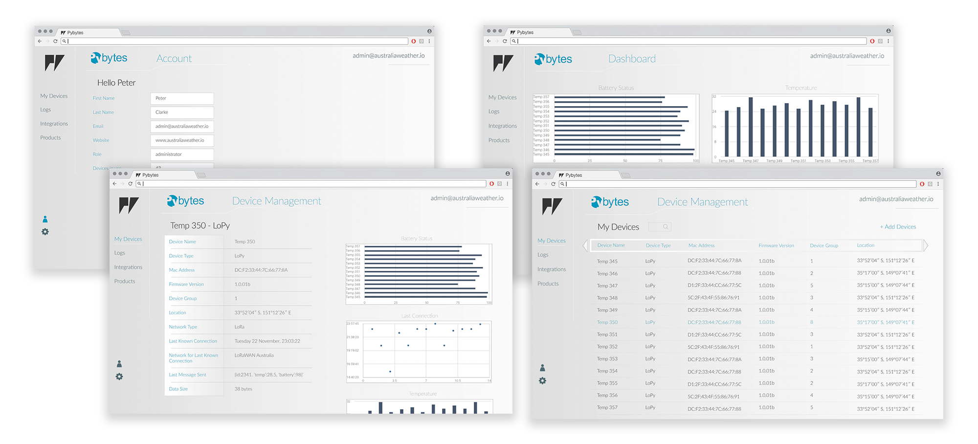 Pybytes is Pycom's middleware platform available for all Pycom modules (Summer 2017). Pycom is running the Closed Beta from June through to the beginning of August. The first full version of Pybytes is targeted for a late August 2017 release. Please read the following sections for more information about how to get started using the middleware platform.