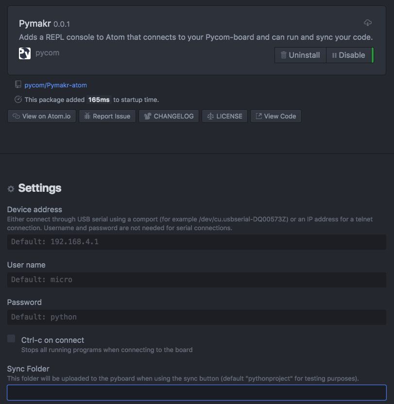 - That’s it! You’ve installed the Pymakr Plugin for Atom.